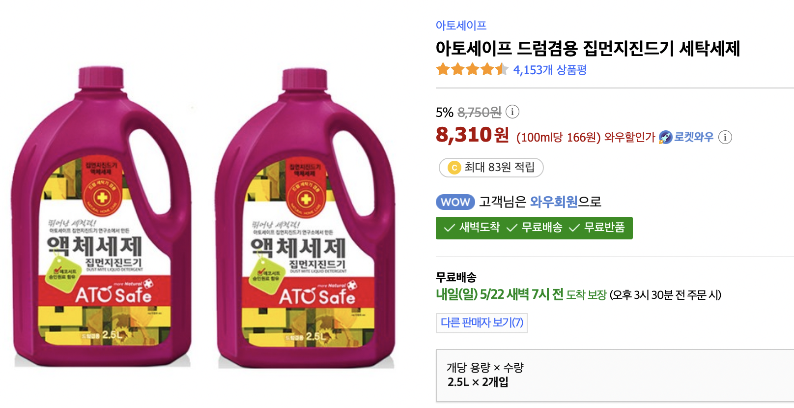 현재 별점 4.6점, 리뷰 47510개를 가진 아토세이프 액상세제 본품, 3.1L, 2개! 지금 쿠팡에서 더 저렴하고 다양한 액체세제 제품들을 확인해보세요.