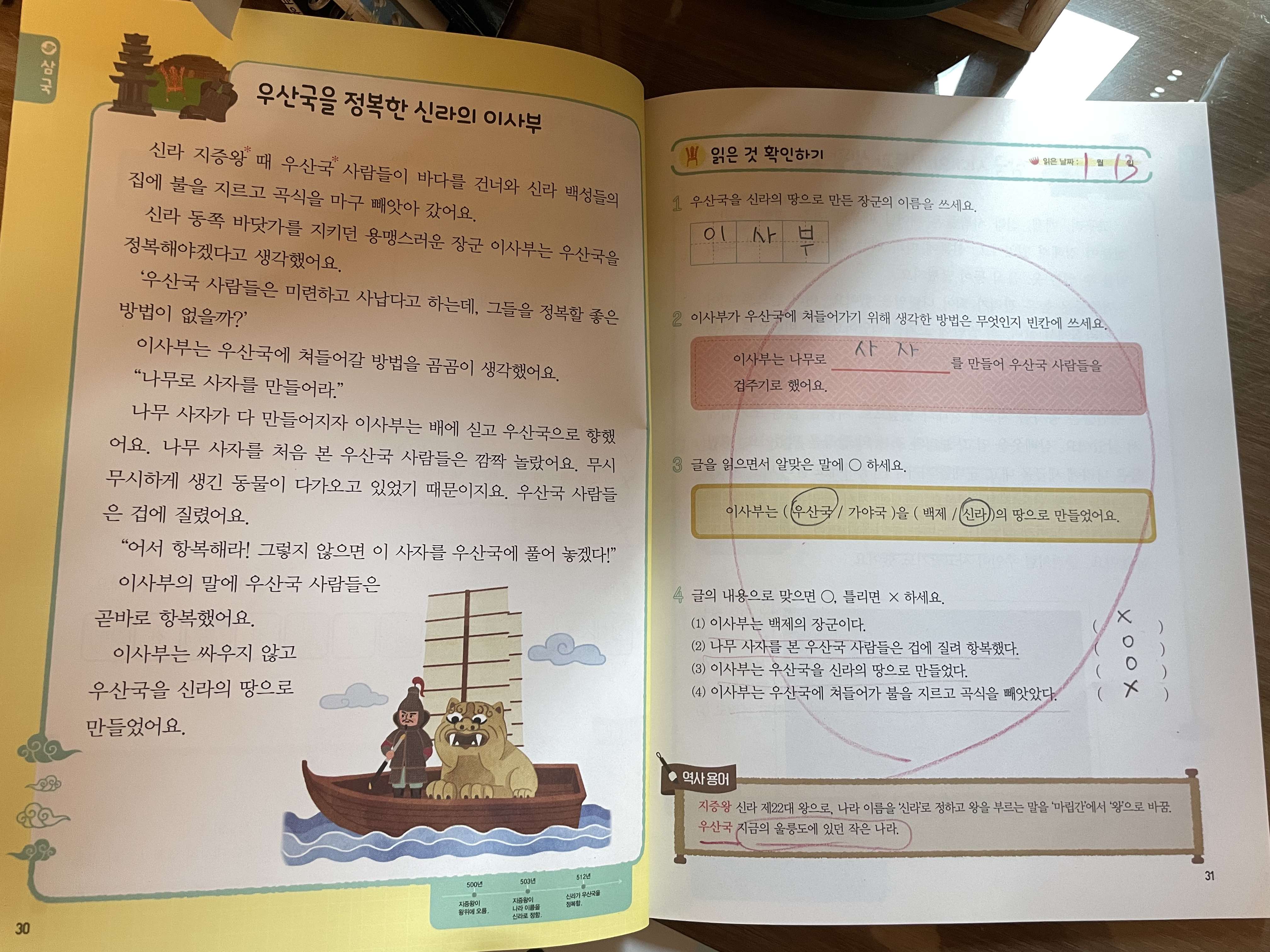 한국사에 대해서 관심 가지게 하고 싶어서 김군은 한국사부터 시작했어요.